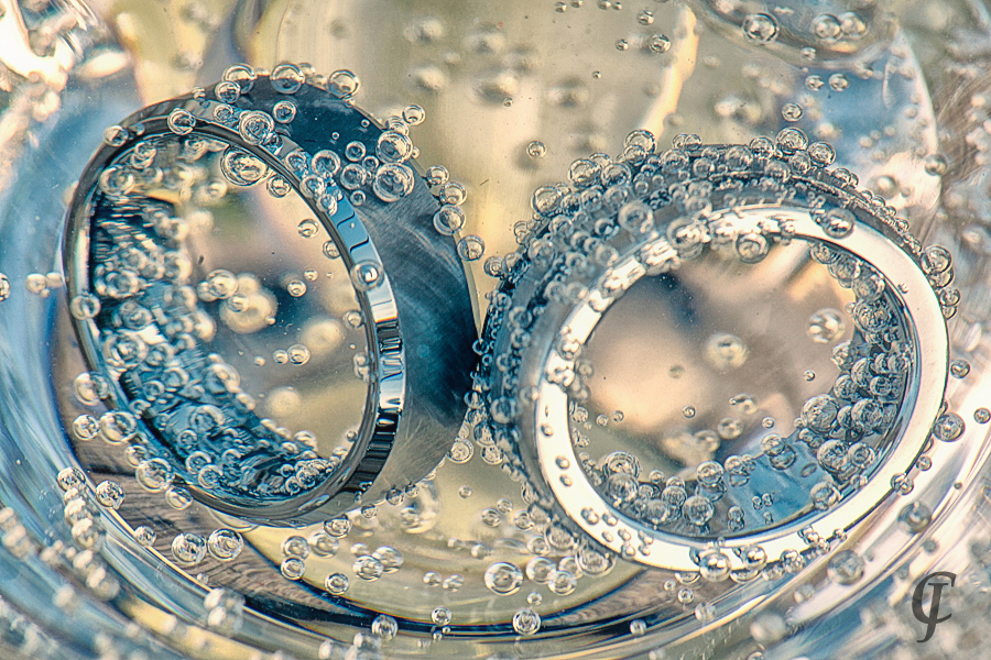 Seit ich ein Bild der Eheringe mit den Blubberblasen zum ersten Mal in meiner Galerie gezeigt habe, möchte ein großer Teil meiner Kunden genau so ein Bild und viele Kunden stellen im Vorgespräch die Frage, wie man das Bild macht. Es sieht vielleicht kompliziert aus, ist es aber nicht. Für alle, die es interessiert oder die sich sogar selbst einmal daran versuchen wollen, hier ein kurze Anleitung.